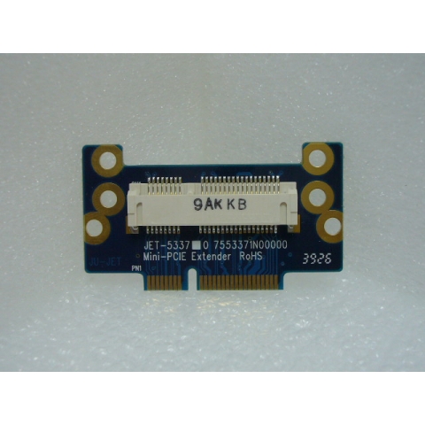 Testing Solution A ★Straight PCI-E to Mini PCI Express Hot Swap Adaptor ★JET-1101 PCIE- MINI PCIE Card Hot Swap Adaptor provides the transformation of PCI-E x 1 interface into Mini PCI-E card interface. It also can manage the control signal and power isolation. With JET-5303A or JET-5303B PCI Express X1 extender cable, the test main board could be separated from the card testing chamber and the noise signal could be fully screened out. The operator also could switch the testing card without turning the main board computer off. This could save the time for turning computer off to reboot and reload the operation system. Once this is applied to manufacturing or repairing stations, the efficiency could be improved much. JET-5322A/JET-5337 MINI PCIE Card & JET-5321 MINI PCIE Card-Express Card could be used on PC to test Mini-PCI-E / Express card interface easily. The testing system could be used for both interface without change any hardware configuration to reduce testing cost and overall efficiency.